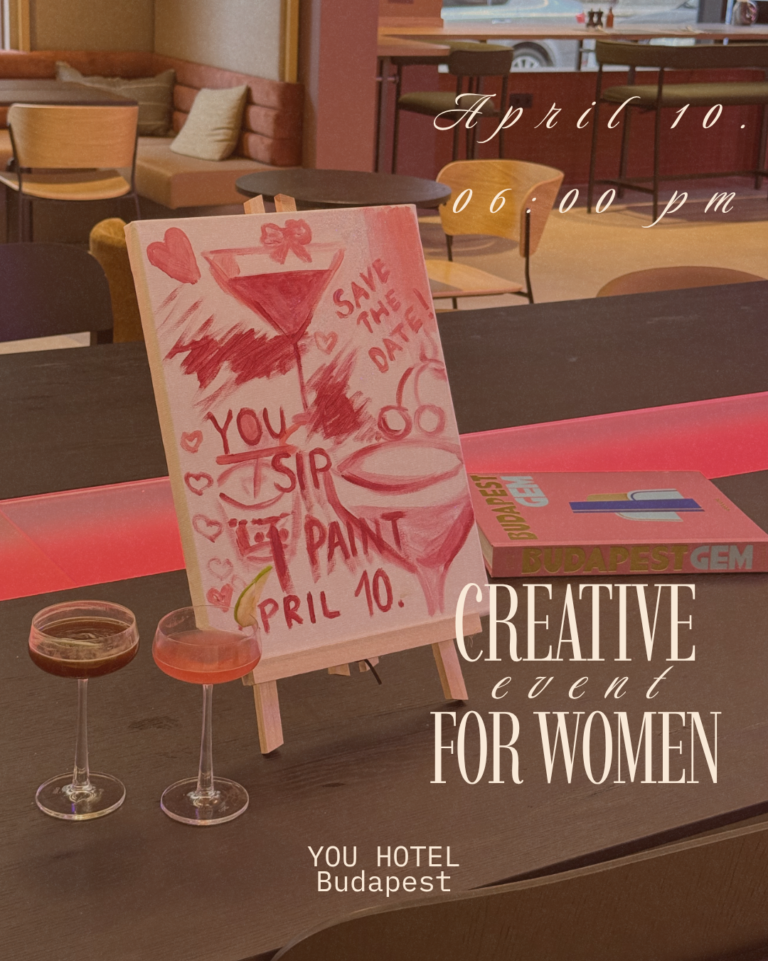 Számomra nagyon fontos, hogy ne műtermi hangulat uralkodjon, ne érezd azt, hogy egy iskolapadban ülsz és próbálod a csendéletet tökéletesíteni. Itt csak élvezned kell a művészet adta értékeket. A hangulat mindig oldott és inspiráló: gyertyafény, kellemes zene, italok, sok nevetés és kapcsolódás. Az élmény mellett pedig teljes felszerelést biztosítok: festőállványt, előkészített vásznat, ecseteket, festékeket, kötényt – Neked csak ott kell lenned.
